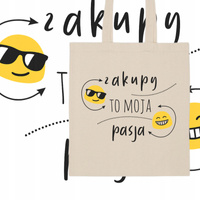 Torba Eco Bawełniana na Zakupy na Plażę na Ramię z Nadrukiem Zakupy Pasja