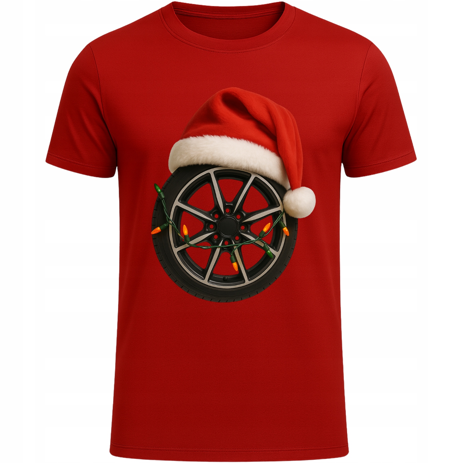 Koszulka Świąteczna Felga Super Nadruk Prezent dla Fana Motoryzacji CZERWONY