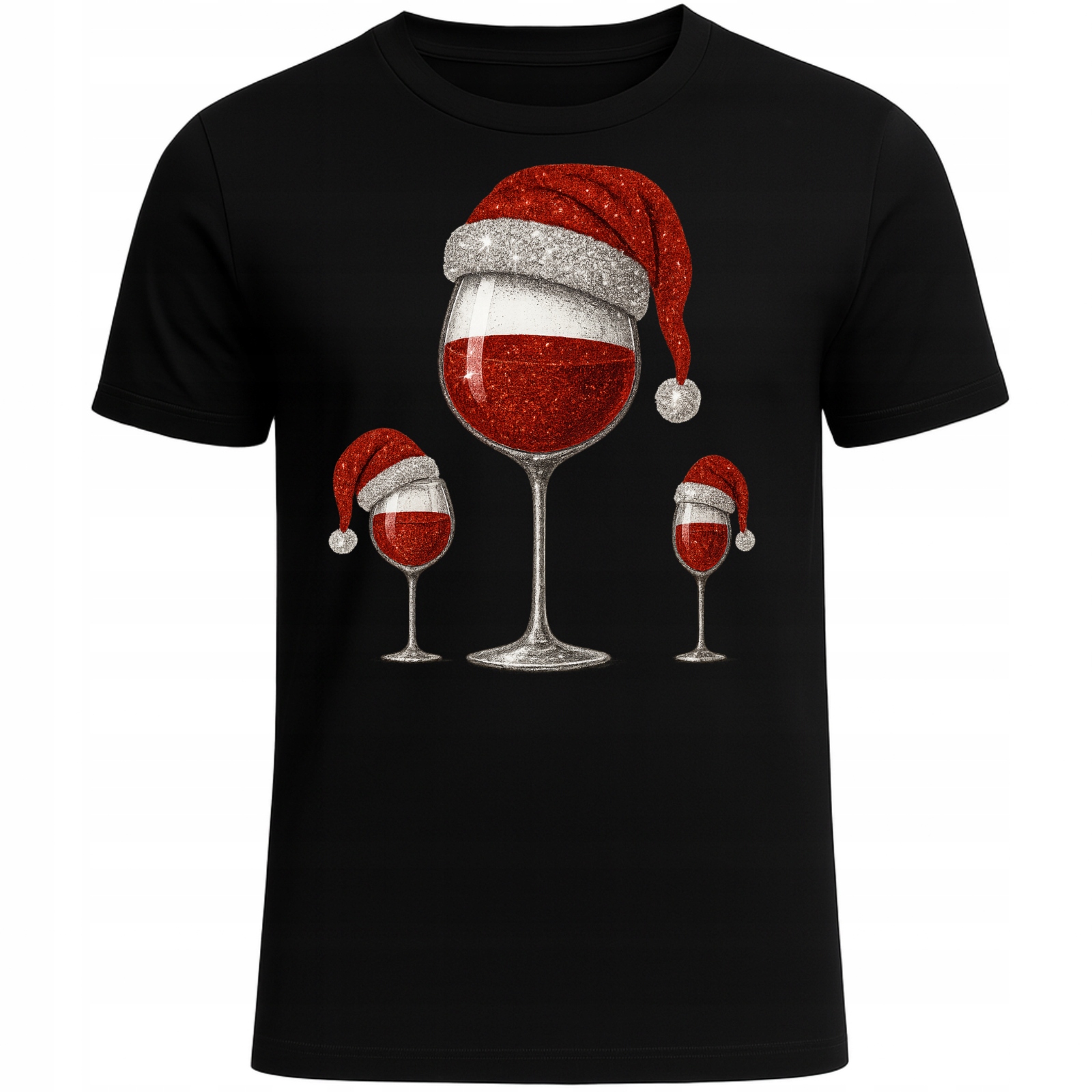 Koszulka Świąteczna Imprezowa z Motywem Wina i Czapki Mikołaja