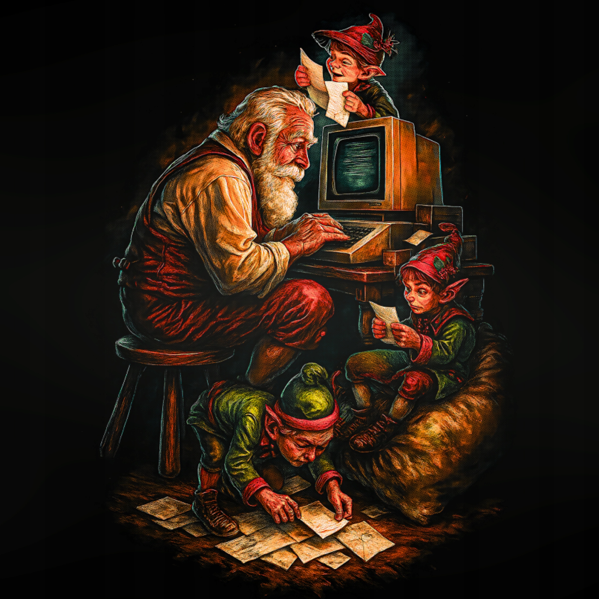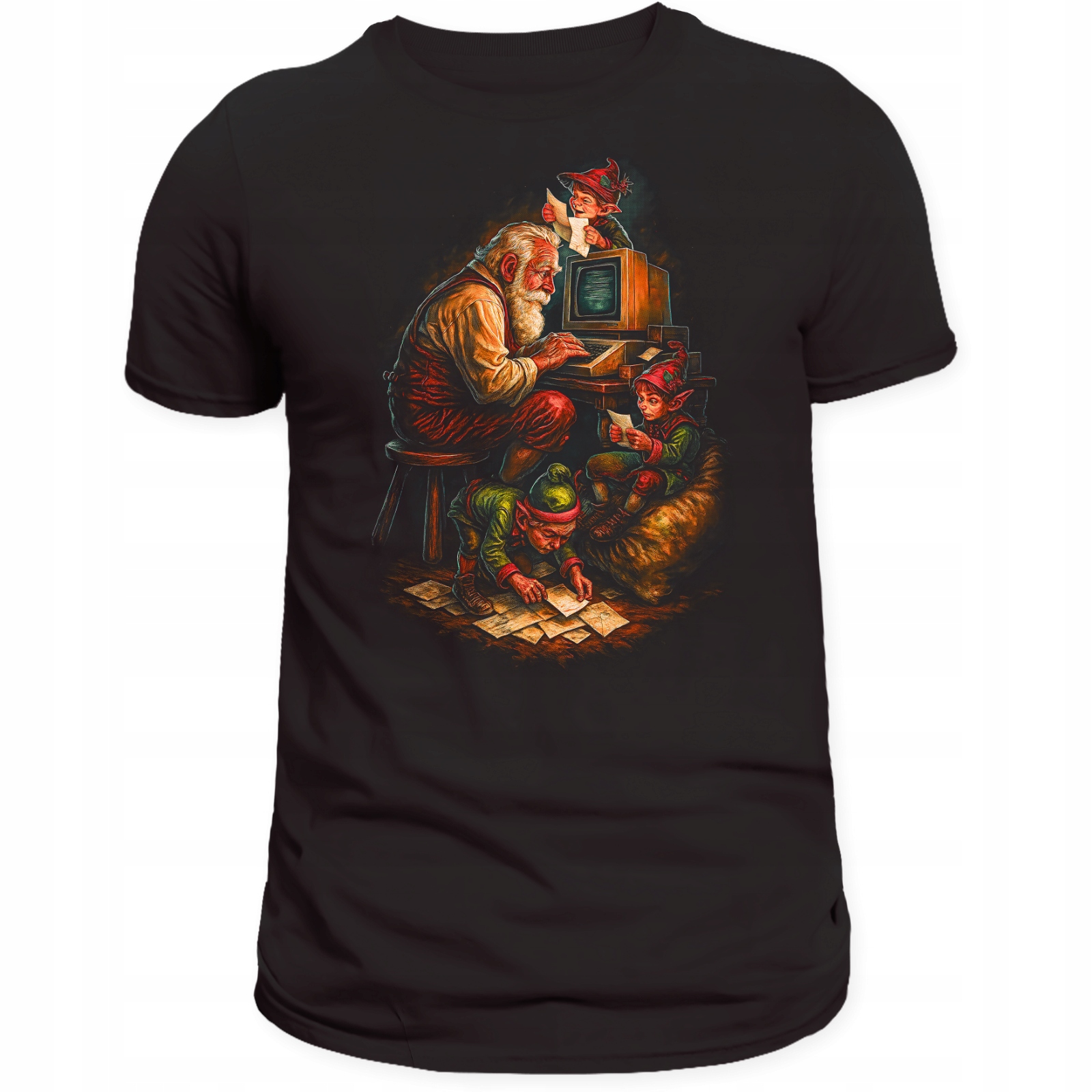 Koszulka Świąteczna Mikołaj z Elfami Nadruk 3D Prezent Bawełna