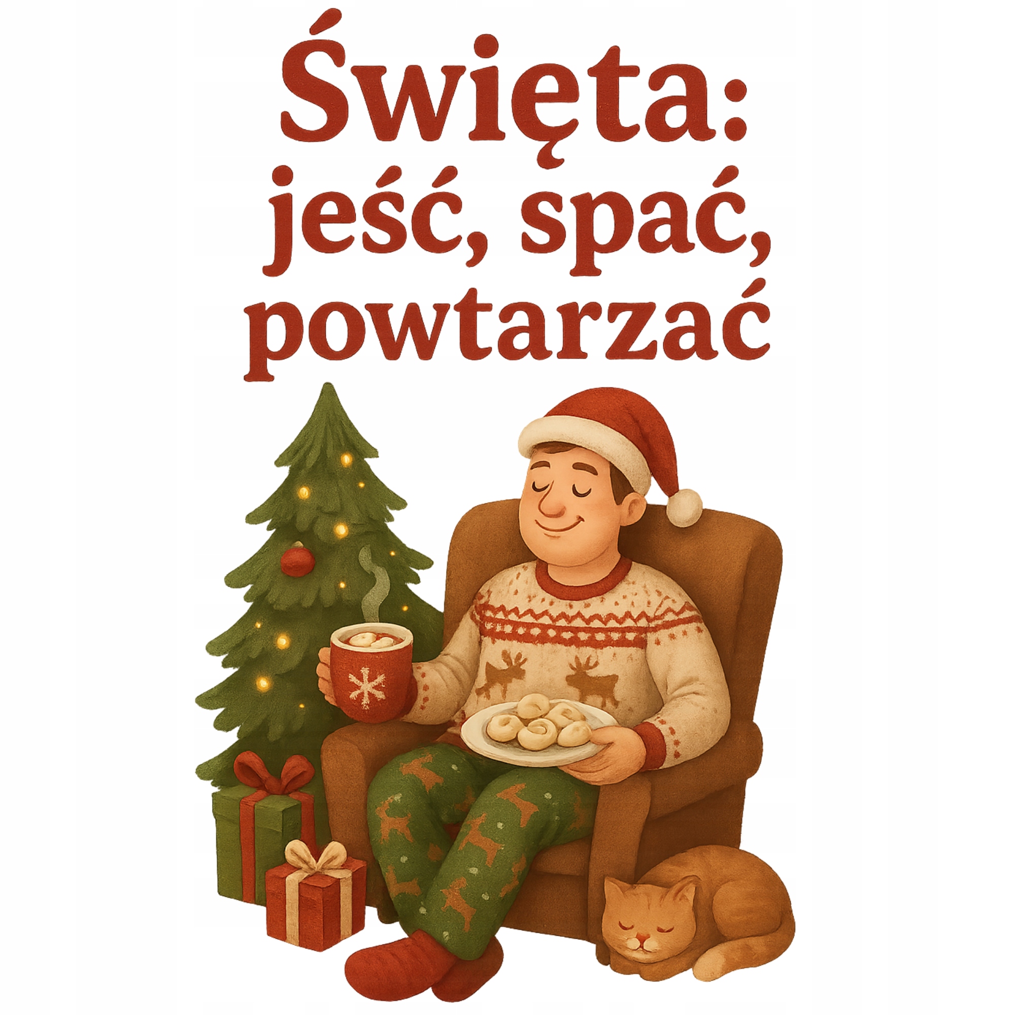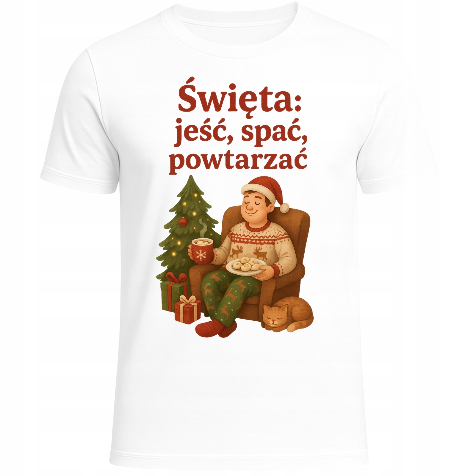 Koszulka Świąteczna Święta Jeść Spać Powtarzać Super Zabawny Prezent