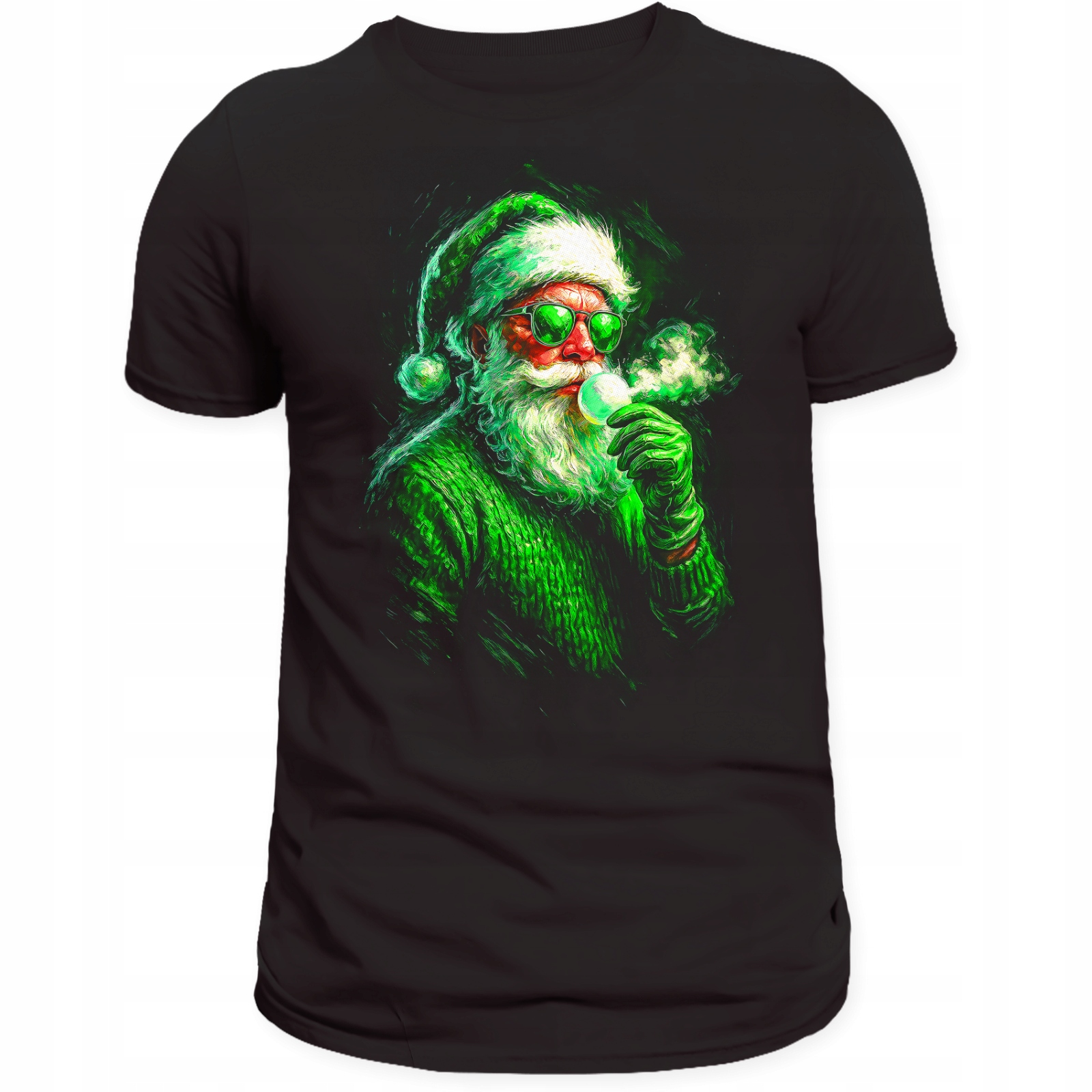 Koszulka Świąteczna Zielony Mikołaj Nadruk 3D Prezent na Święta Bawełna