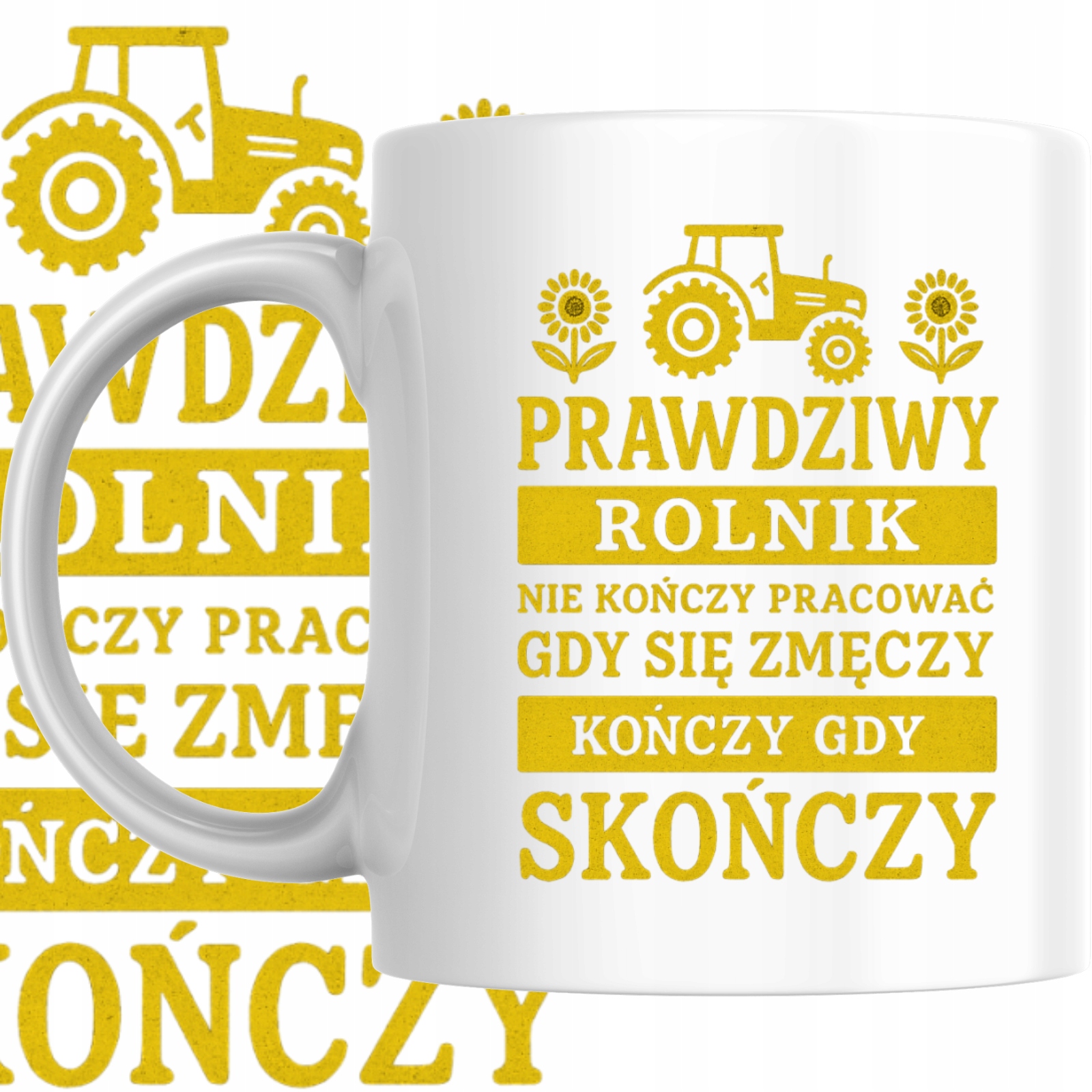 Kubek Nadruk Prawdziwy Rolnik Żniwa Wieś Pole Humor Praca Upominek Prezent
