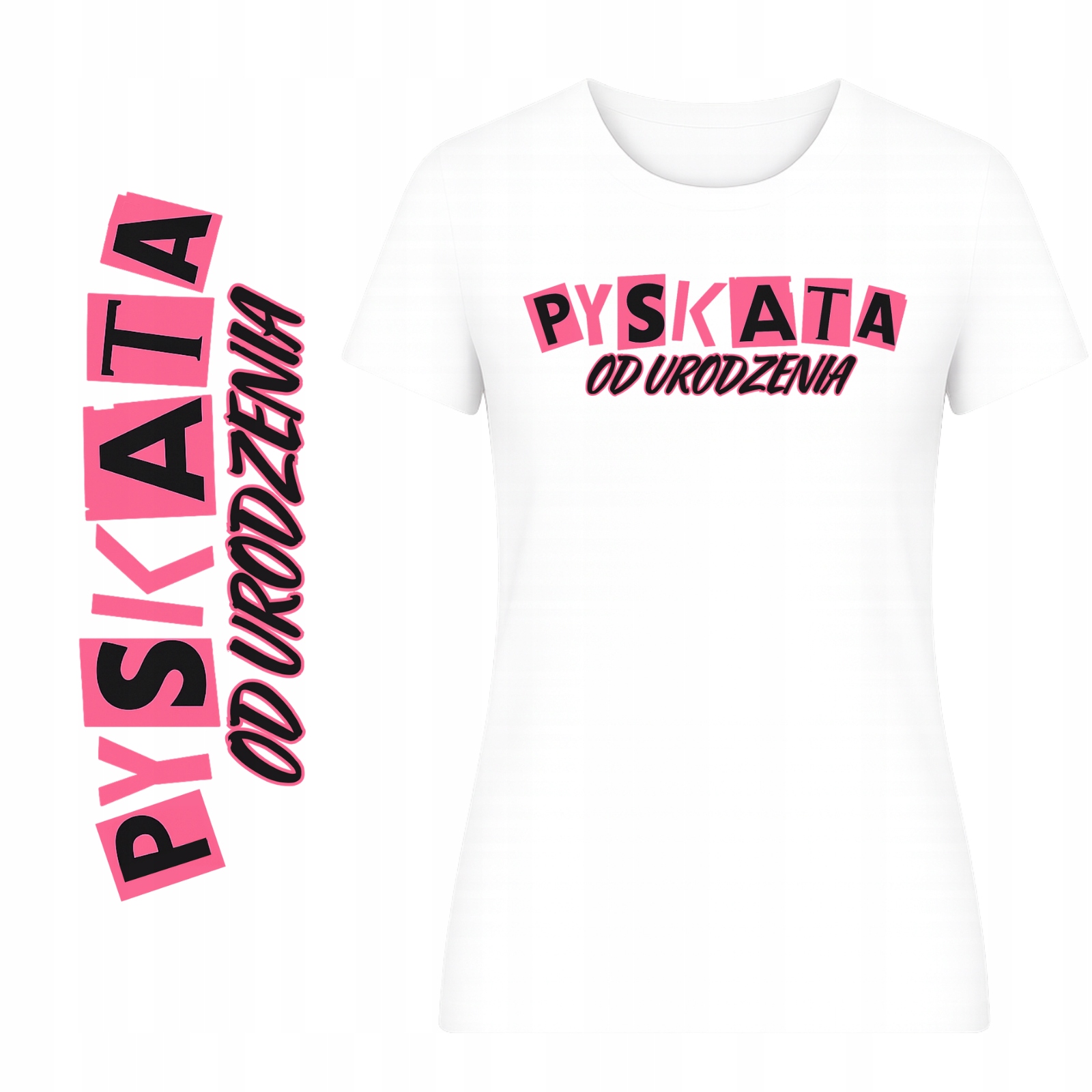 T-Shirt Damski Koszulka HIT Nadruk Pyskata Od Urodzenia Zabawny Prezent