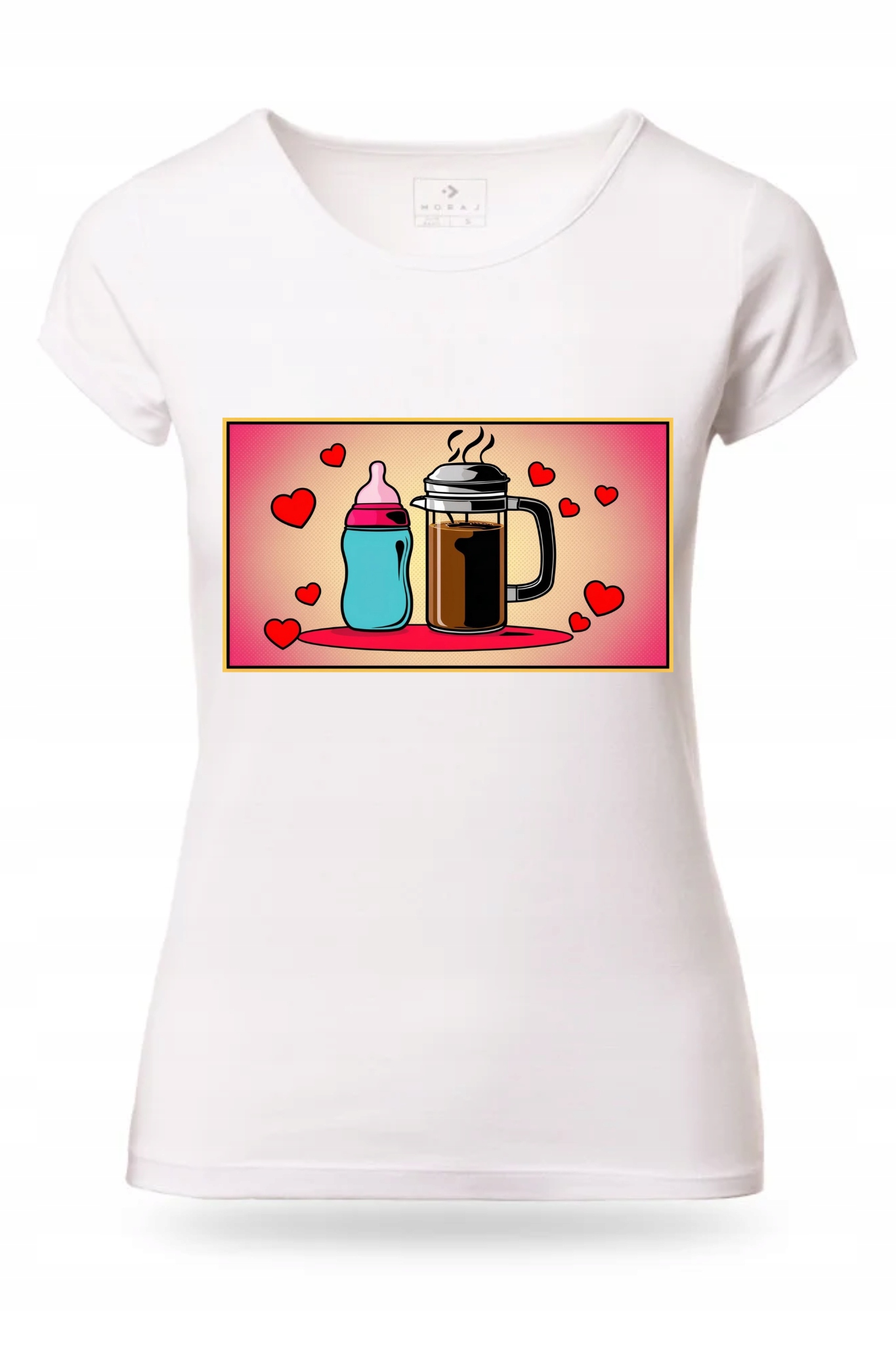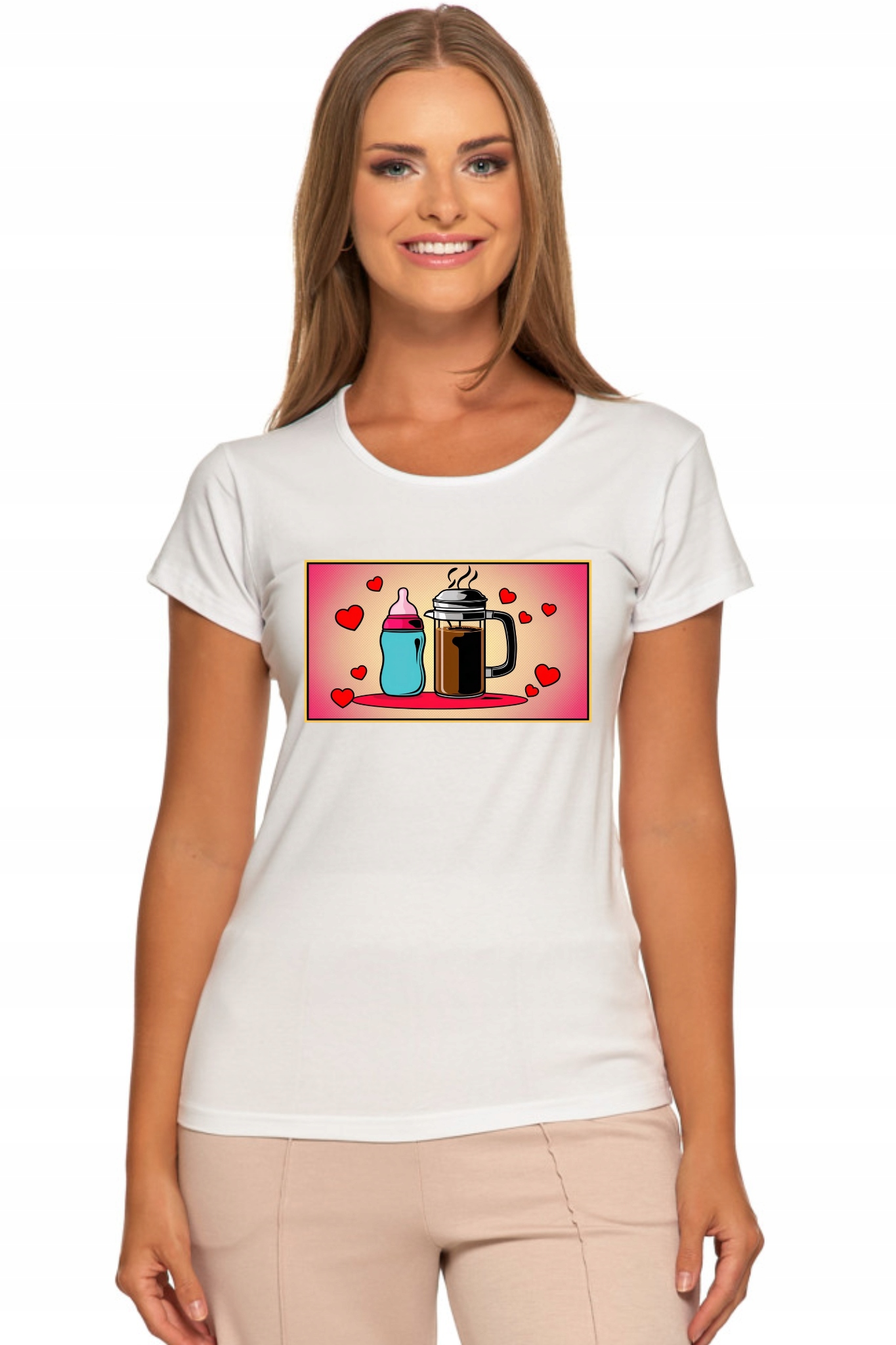 T-Shirt Damski Koszulka Nadruk Butelka Kawa Serca Dzień Matki Prezent