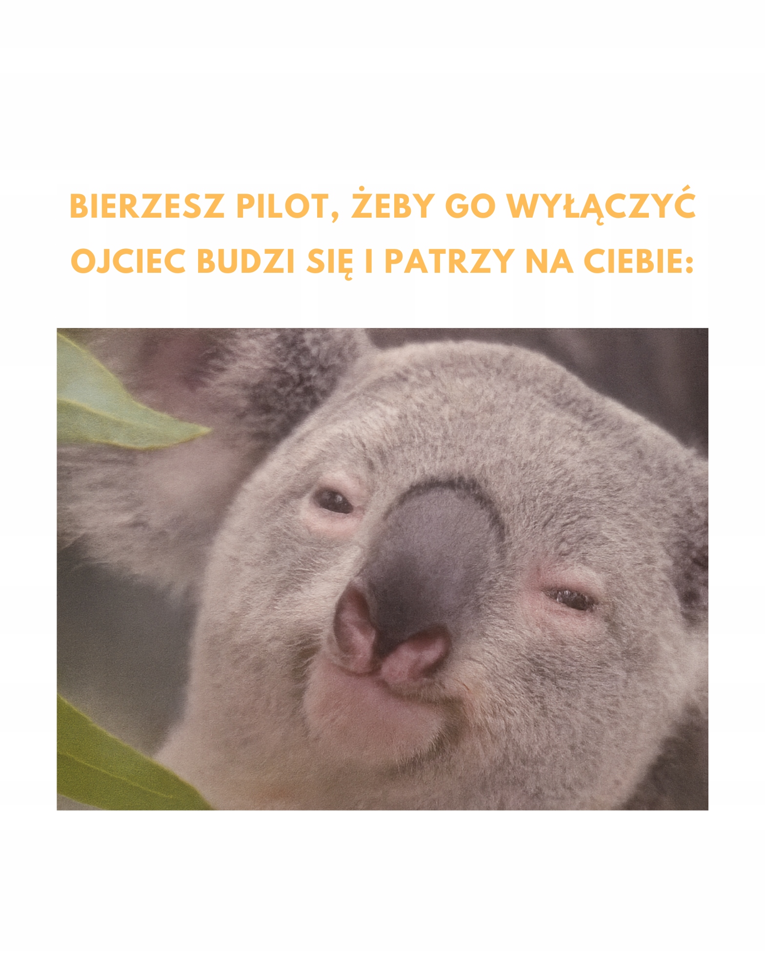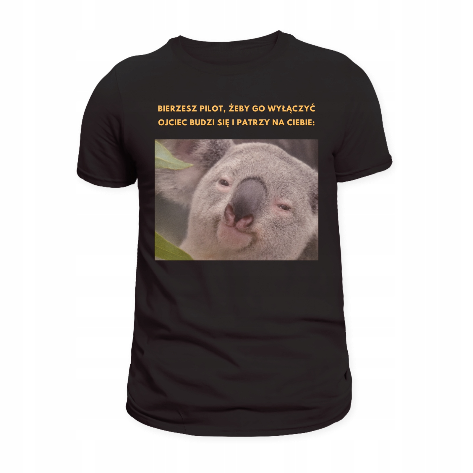 Znasz ten moment, gdy tata zasypia przed telewizorem, a Ty po cichu sięgasz po pilota? Nagle – jakby nic – otwiera oczy i patrzy z dezaprobatą? Jeśli tak, ta koszulka jest dla Was! Kultowa scena uchwycona na zabawnym nadruku z koalą to świetny sposób, by rozbawić rodzinę i znajomych.
