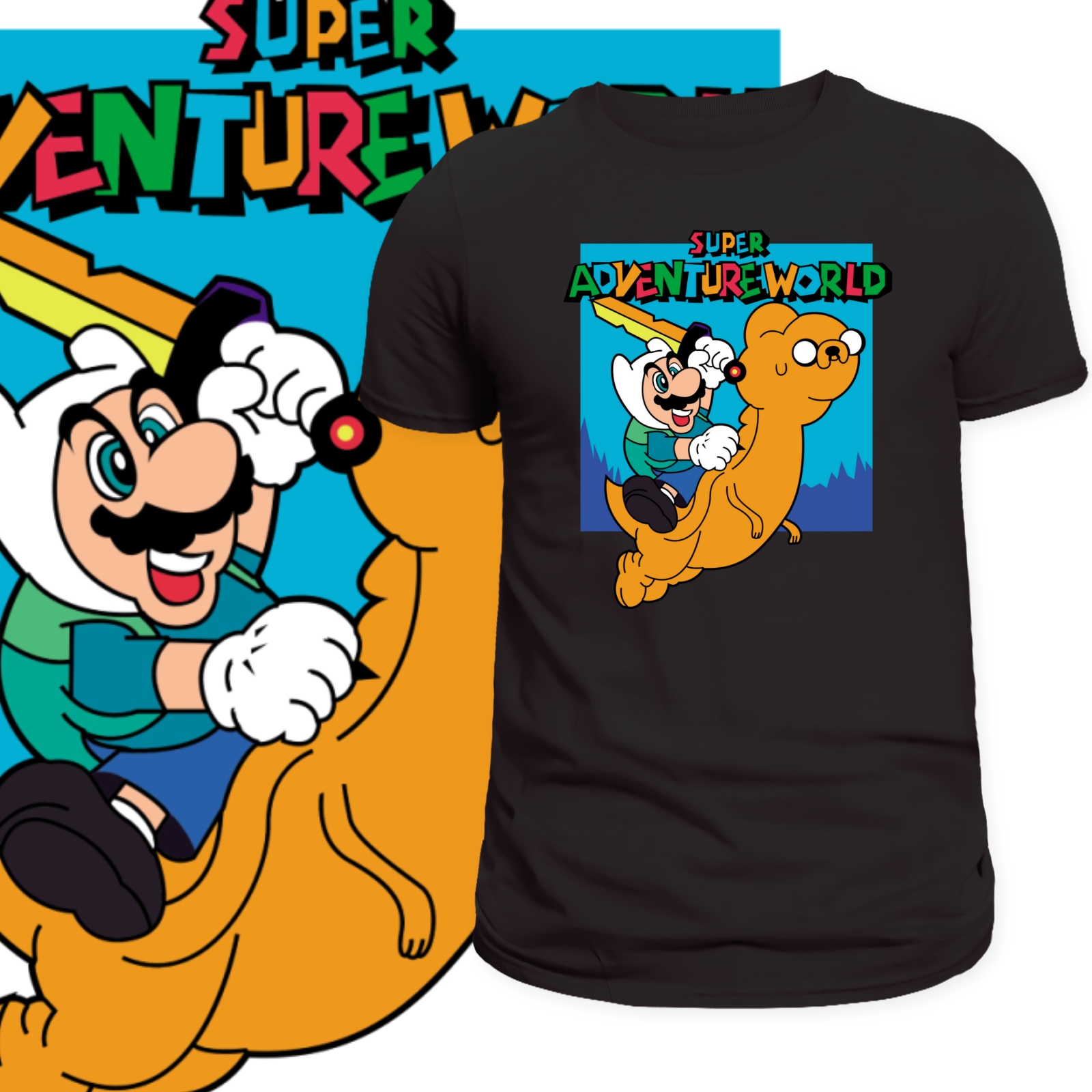 ➡️ Unikalna grafika crossover – kreatywne połączenie Mario i bohaterów z „Pory na Przygodę” przyciąga spojrzenia i wywołuje uśmiech.
