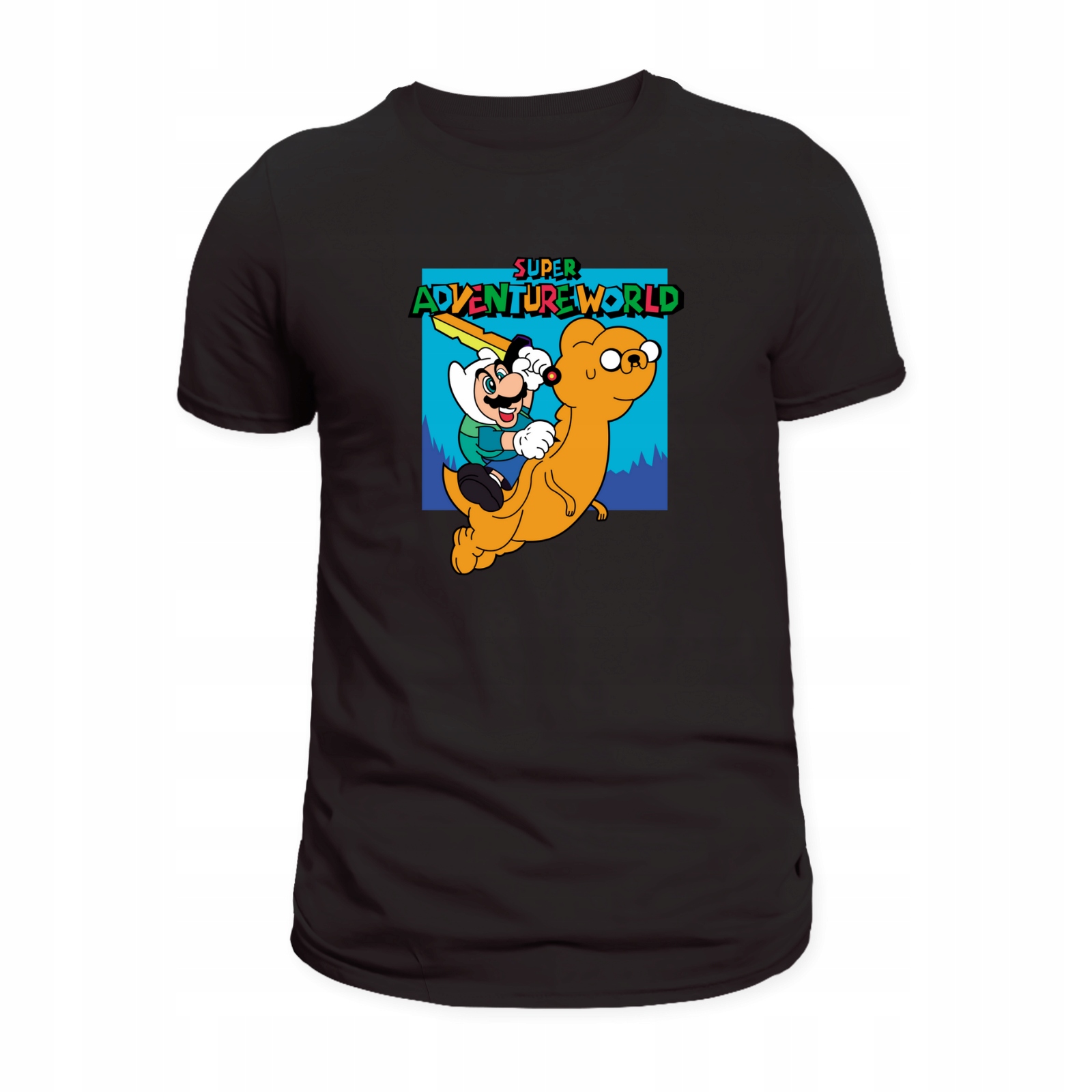 Koszulka męska z nadrukiem łączącym Super Mario Bros i Porę na Przygodę to wybuchowa mieszanka dwóch kultowych światów. Idealna dla fanów gier i animacji, którzy cenią sobie oryginalność i humor w stylu.