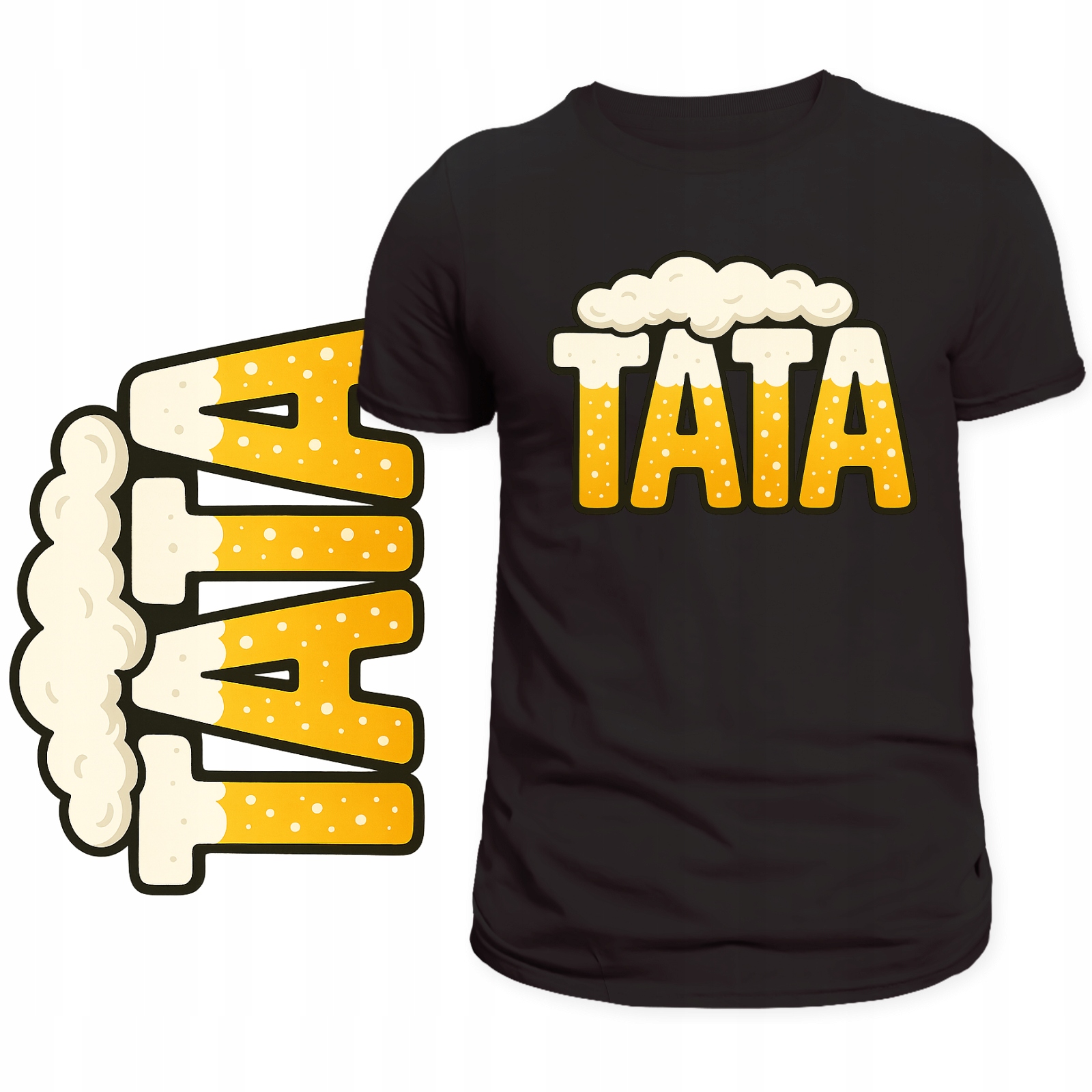 T-Shirt Męski Koszulka Nadruk TATA Motyw Piwa Super Prezent Dzień Ojca