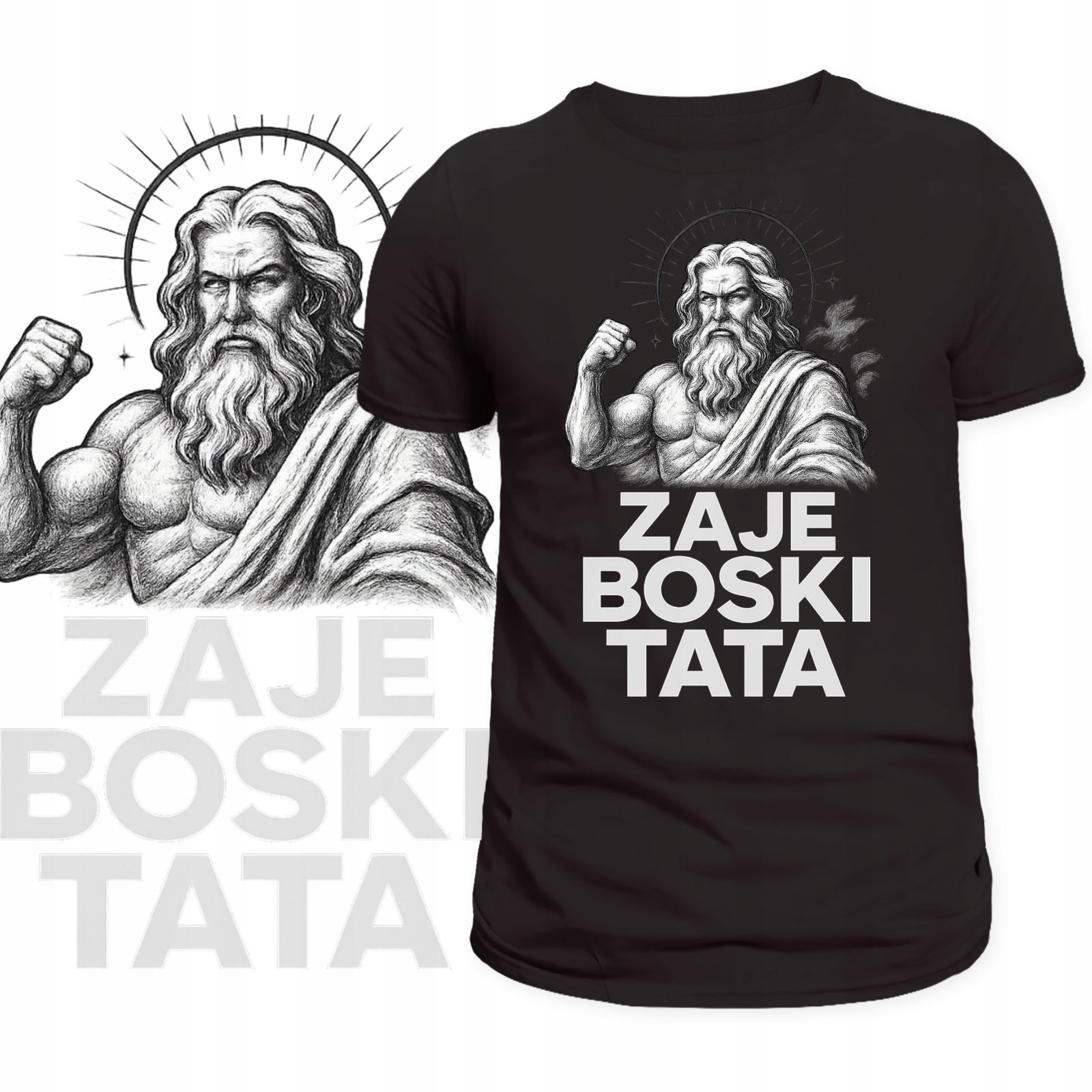 T-Shirt Męski Koszulka Nadruk Zajeboski Tata Bóg Prezent na Dzień Ojca
