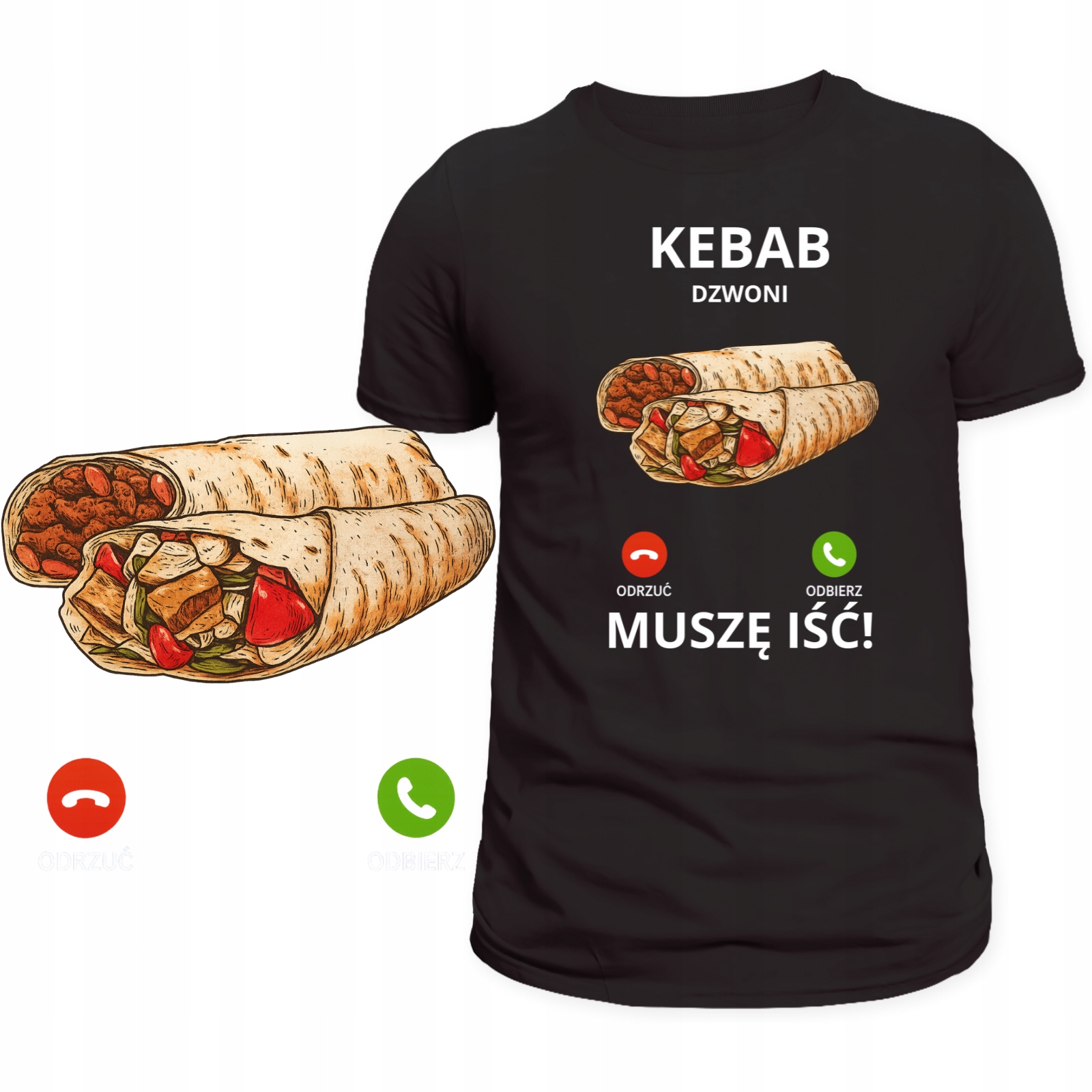 T-Shirt Męski Koszulka Śmieszny Nadruk Kebab Dzwoni Muszę Iść Prezent