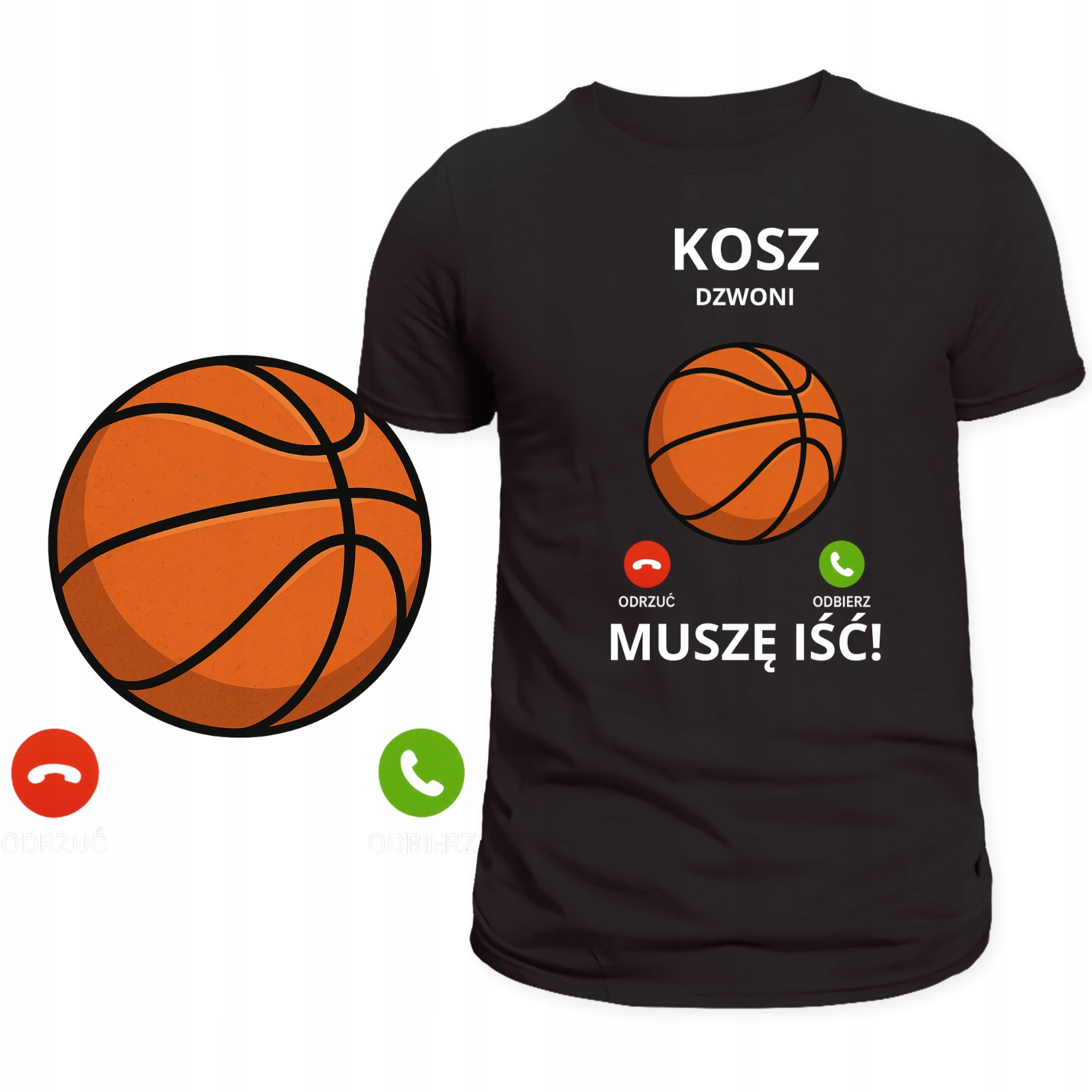 ➡️ Zabawny nadruk: hasło „Kosz dzwoni – muszę iść” przyciąga uwagę i podkreśla sportową pasję.
