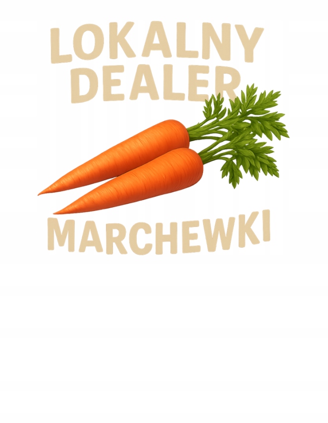 ➡️ Zabawny nadruk – niebanalny motyw z napisem „Lokalny Dealer Marchewki” przyciąga wzrok i wywołuje uśmiech.