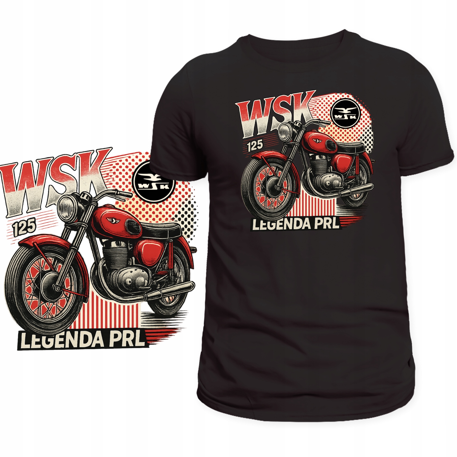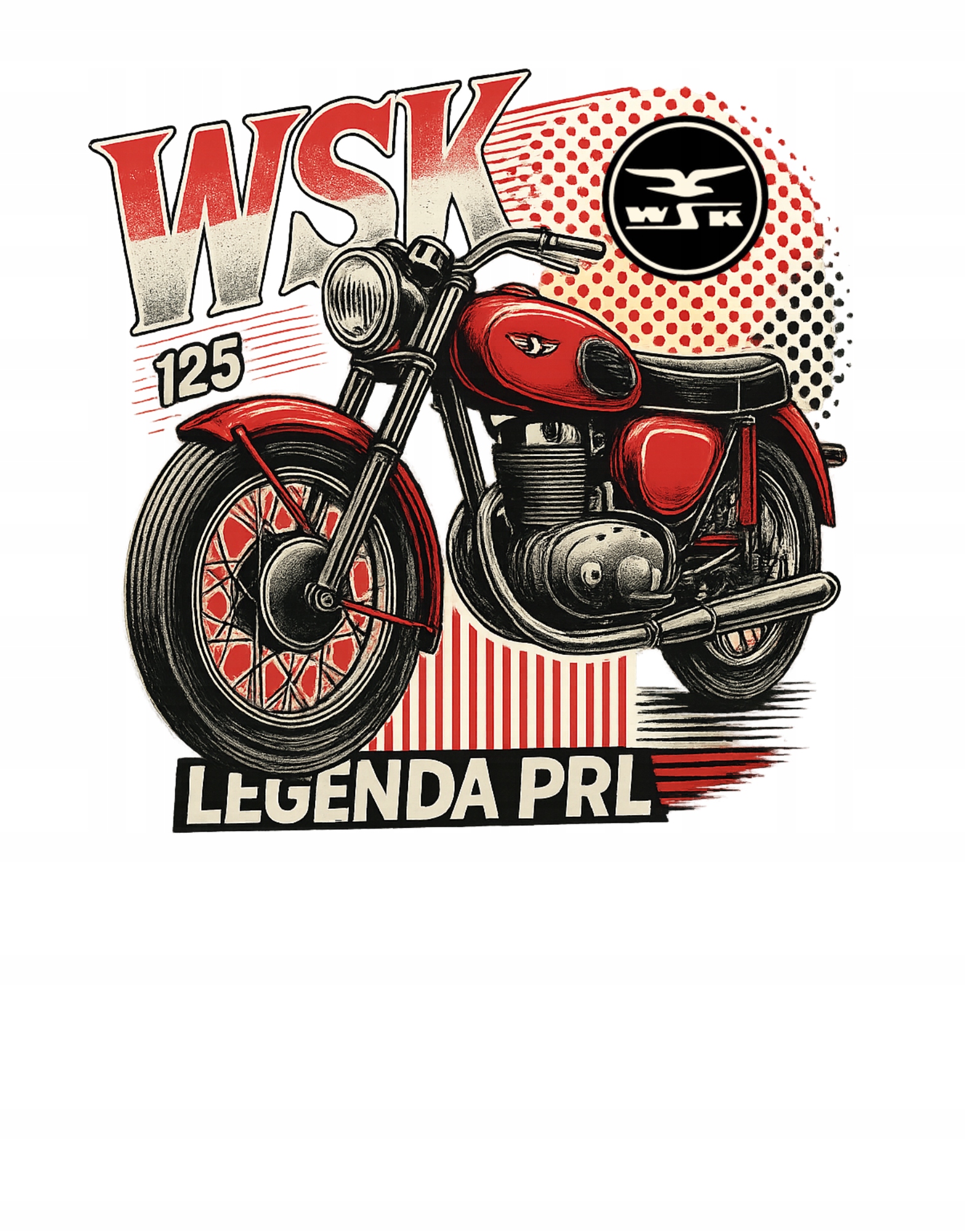➡️ Ikoniczny nadruk: motyw kultowego motoru WSK to ukłon w stronę historii PRL i prawdziwa gratka dla miłośników retro.