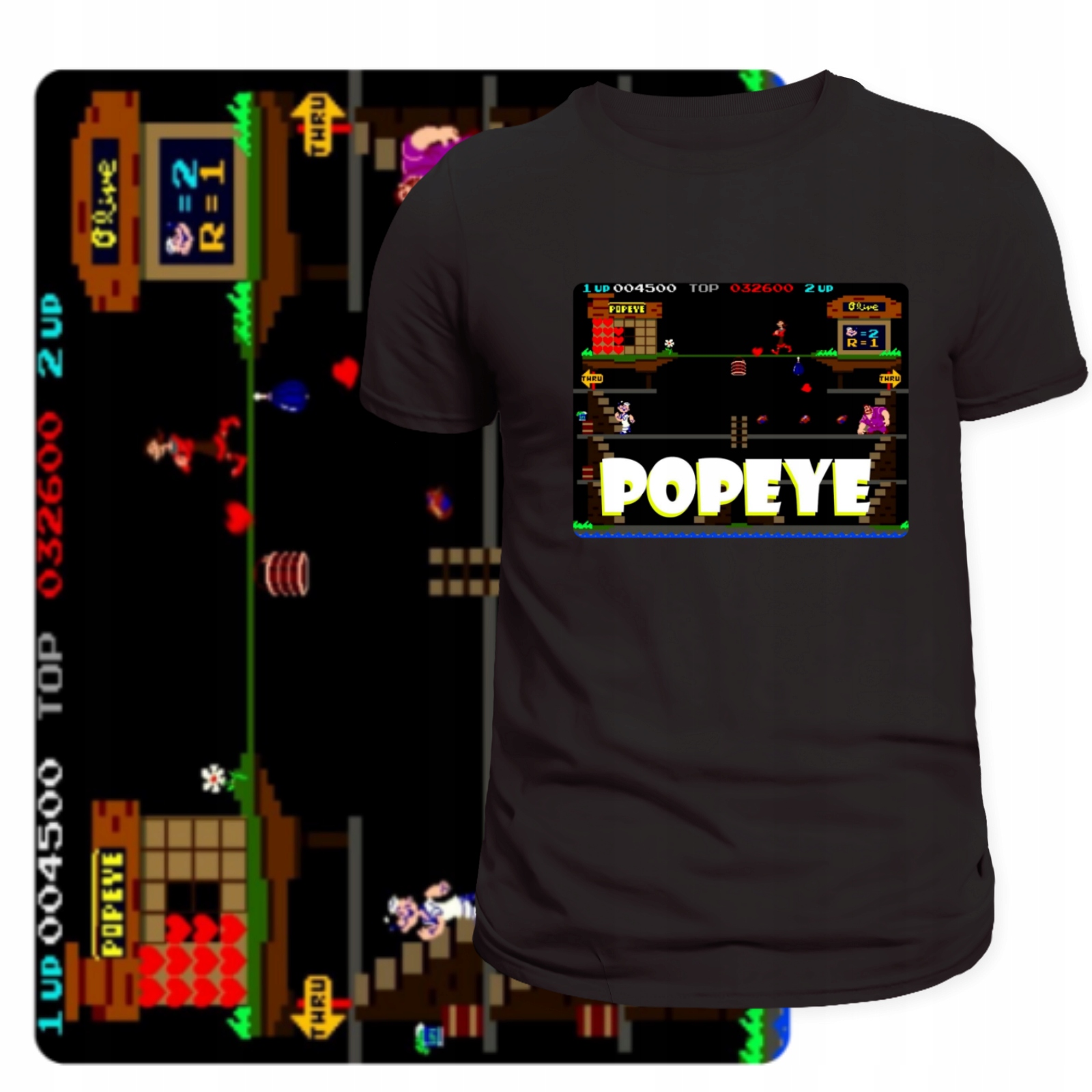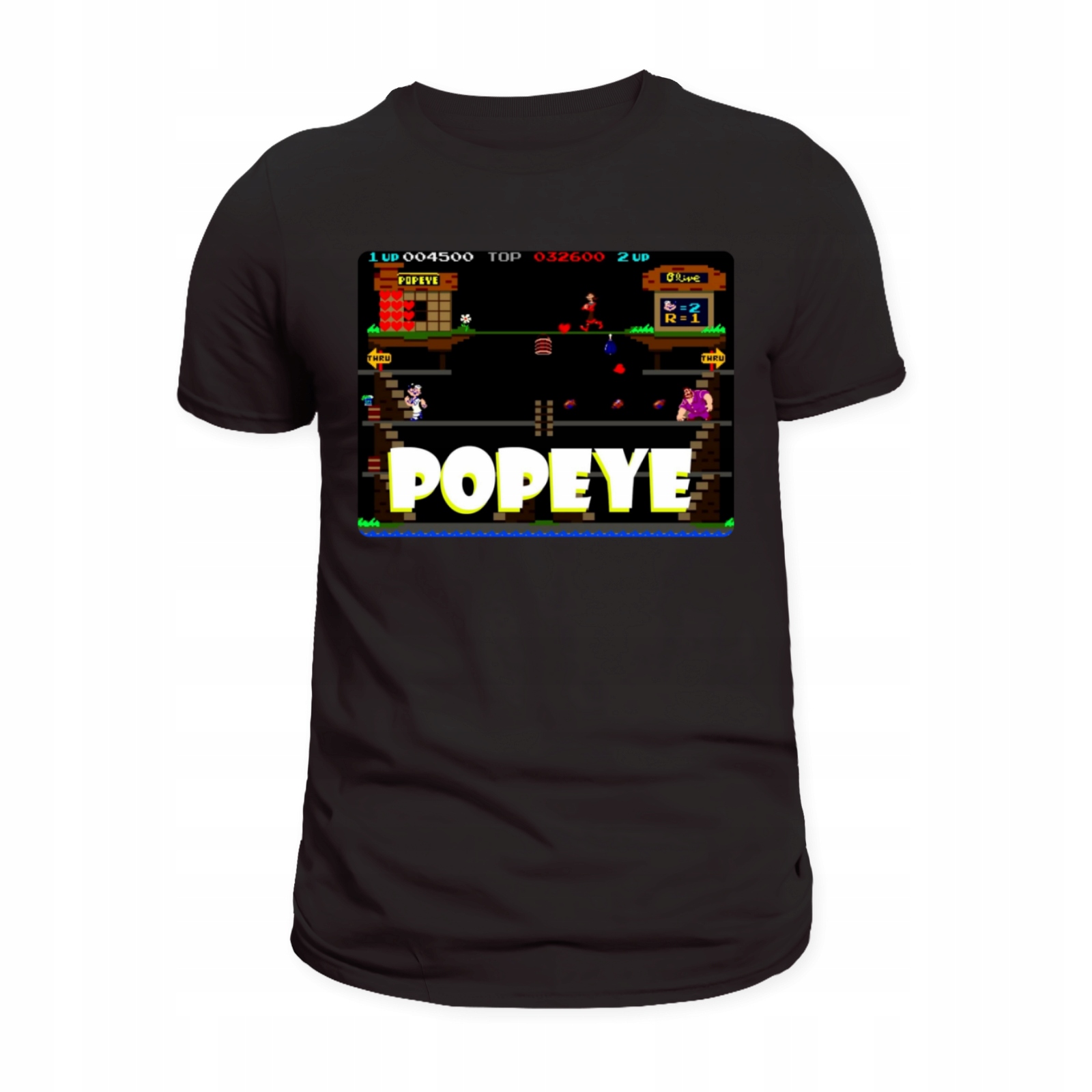 Koszulka męska z nadrukiem nawiązującym do gry "Popeye" to stylowy ukłon w stronę klasycznych tytułów z ery Pegasusa. Idealna dla fanów retro gamingu i kultowych postaci z lat 80. i 90., łączy wygodę noszenia z wyjątkowym designem, który wyróżnia się na tle codziennej mody.