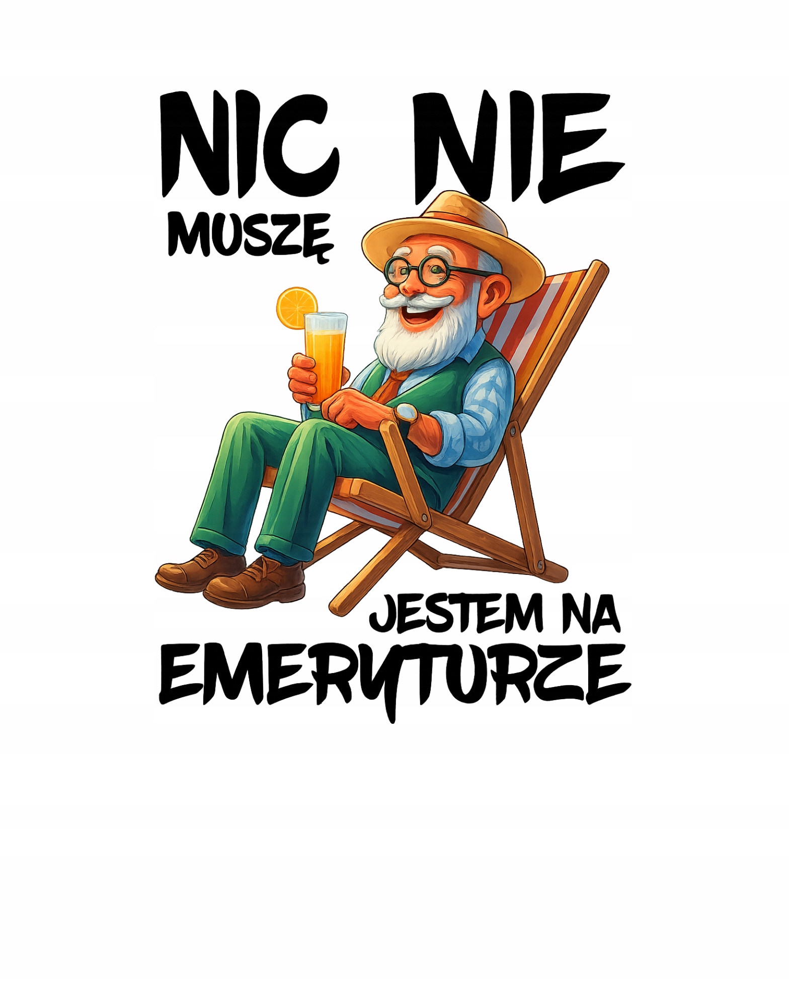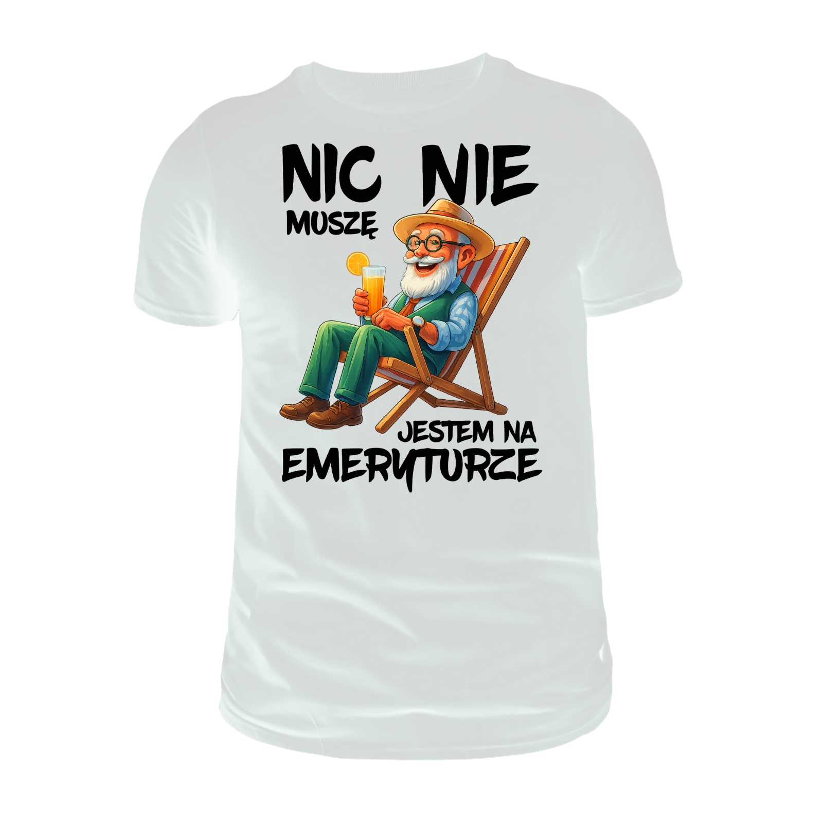 ➡️ Zabawny motyw emeryta – nadruk wyrażający wolność od obowiązków i spokojne życie na zasłużonej emeryturze z pewnością wywoła uśmiech.