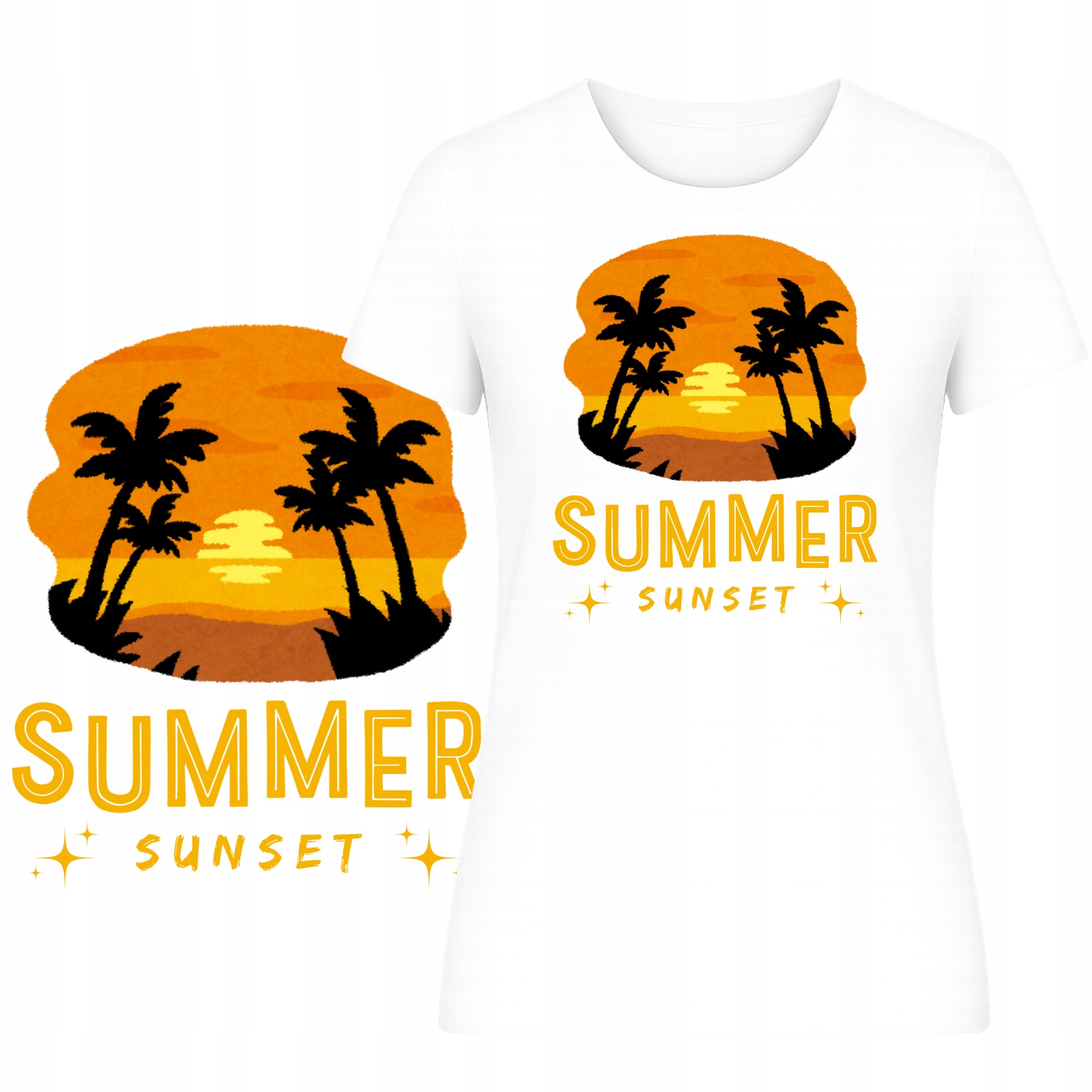 T-Shirt na Lato Damski Koszulka HIT Nadruk Summer Sunset Wakacje Plaża
